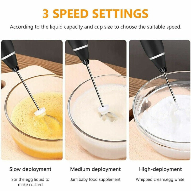 3 velocidades ajustables: Este espumador de leche eléctrico ofrece 3 velocidades ajustables. Puedes seleccionar la velocidad que necesites, ya sea para leche espumosa, matcha, bebidas proteicas de pulpo o batidos de huevo.